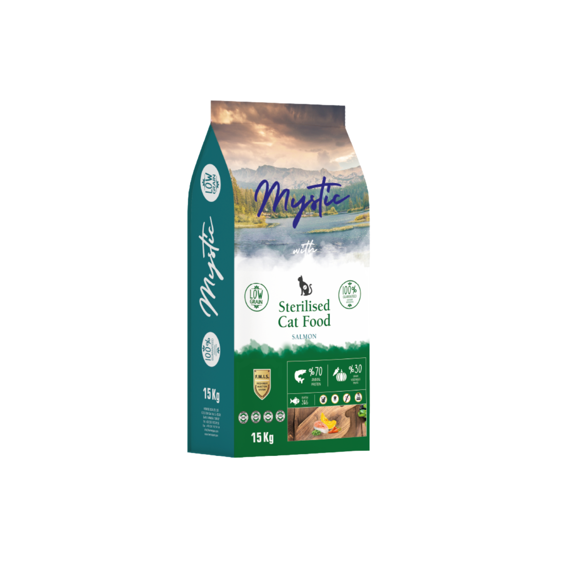 Mystic Sterilized Adult Cat Food Salmon is a nutritionally balanced complete dry cat food, designed to meet the specific needs of sterilized adult cats. After sterilization, cats require controlled fat levels, high-quality protein, and proper mineral balance — this formula delivers exactly that.